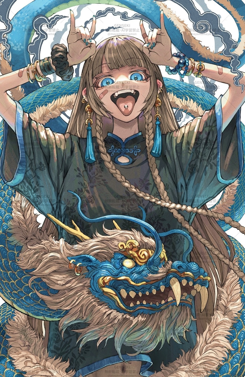 龍の顔や毛などもしっかり描き込まれていて、見ごたえがありますね。