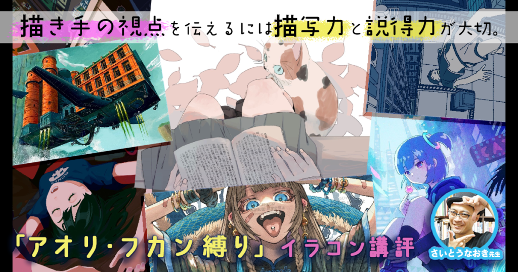 イラストレーターのさいとうなおき先生が審査員の「縛りイラコン」講評レポート、今回は「アオリ・フカン縛り」です。