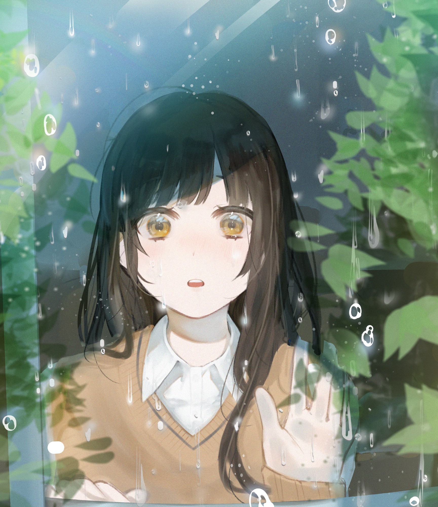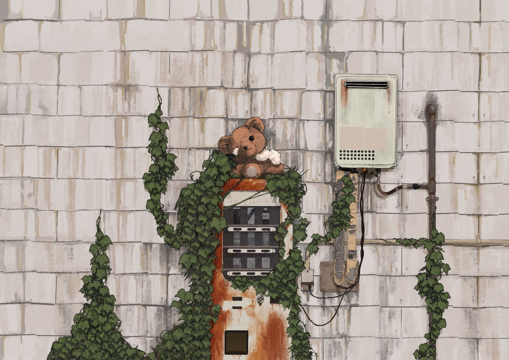 空間全体が涙を流しているようです。葉っぱや壁の汚れの描き込みまでしっかり描かれていますね。