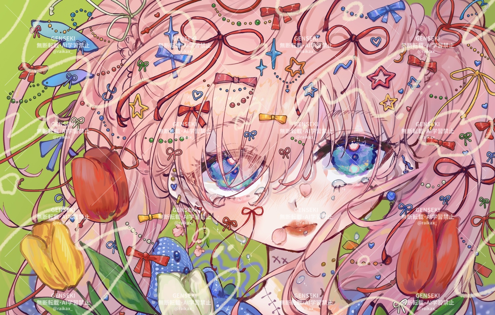ハートやリボン、チューリップや星など、かわいいモチーフがいっぱい描かれていますね。
