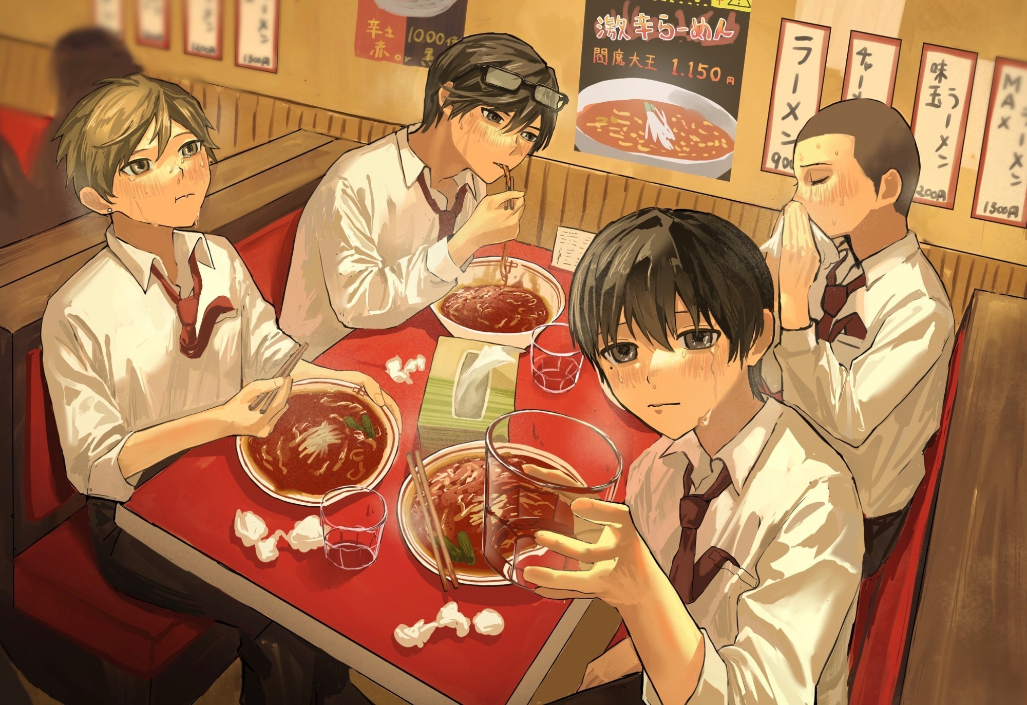 伝説級の激辛ラーメンに、〇〇高校激辛部の男子部員4人が挑む――!