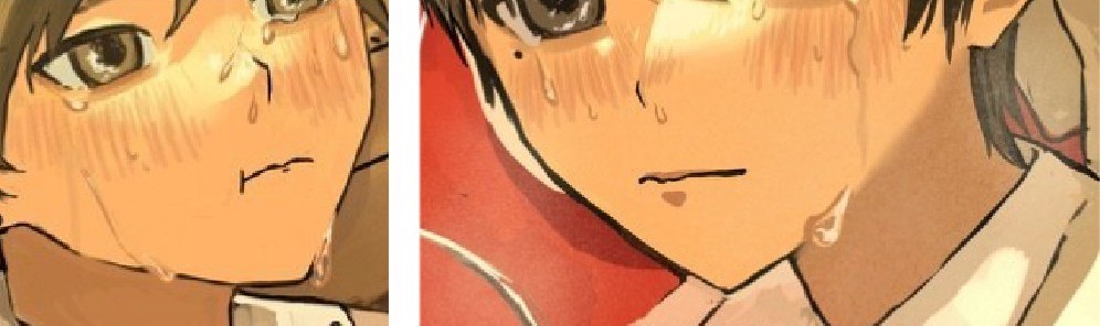 細かい部分ですが、手前の子の涙が少し、顔の形に添っていない印象です。ギャグにする意図かもしれませんが、サイズも大きすぎるのか、ここだけ若干唐突に見えてしまいました。